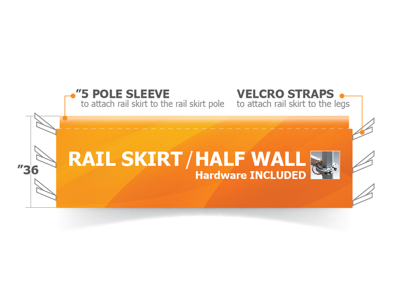 Complement your pop up tent with our top of the line 15′ single sided and full dye sublimated railskirt and give a finished look to your booth.