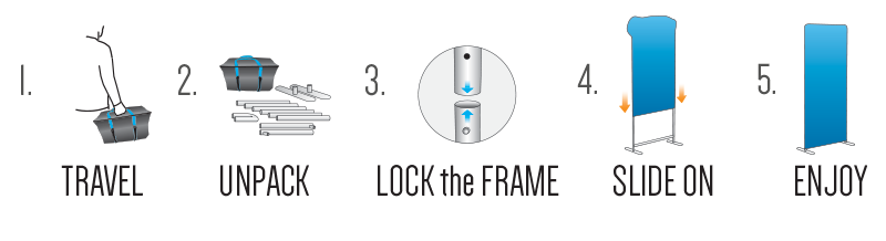 Our Quick-N-Fit Tension Walls were not only designed to create a striking presentation, but with convenience in mind. Fast and easy to set up, it can be quickly assembled without having to hire help. Composed of durable aluminum tubes that connects together and lock in place with a push button, this tubing technology allows for fast set up and take down. The high resolution graphic sleeves provide a perfect brand presentation to make an impact at any show.