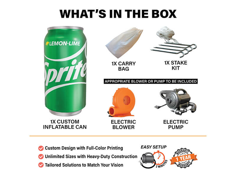 Custom Design with Full-Color Printing: Our award-winning designers create inflatable cans with vivid, full-color printing to maximize your brand’s visibility.